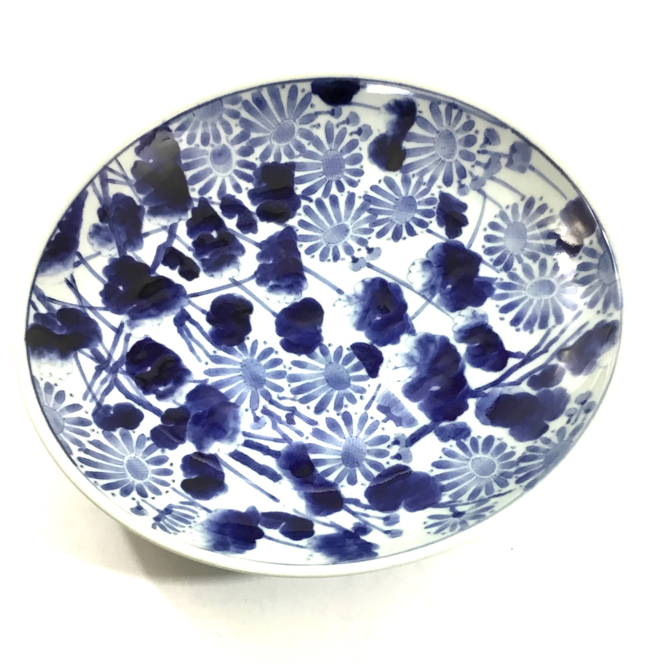 24センチの大皿です、盛り皿やパスタ、カレーにもお使いください。菊の花を丹念に描いてます。