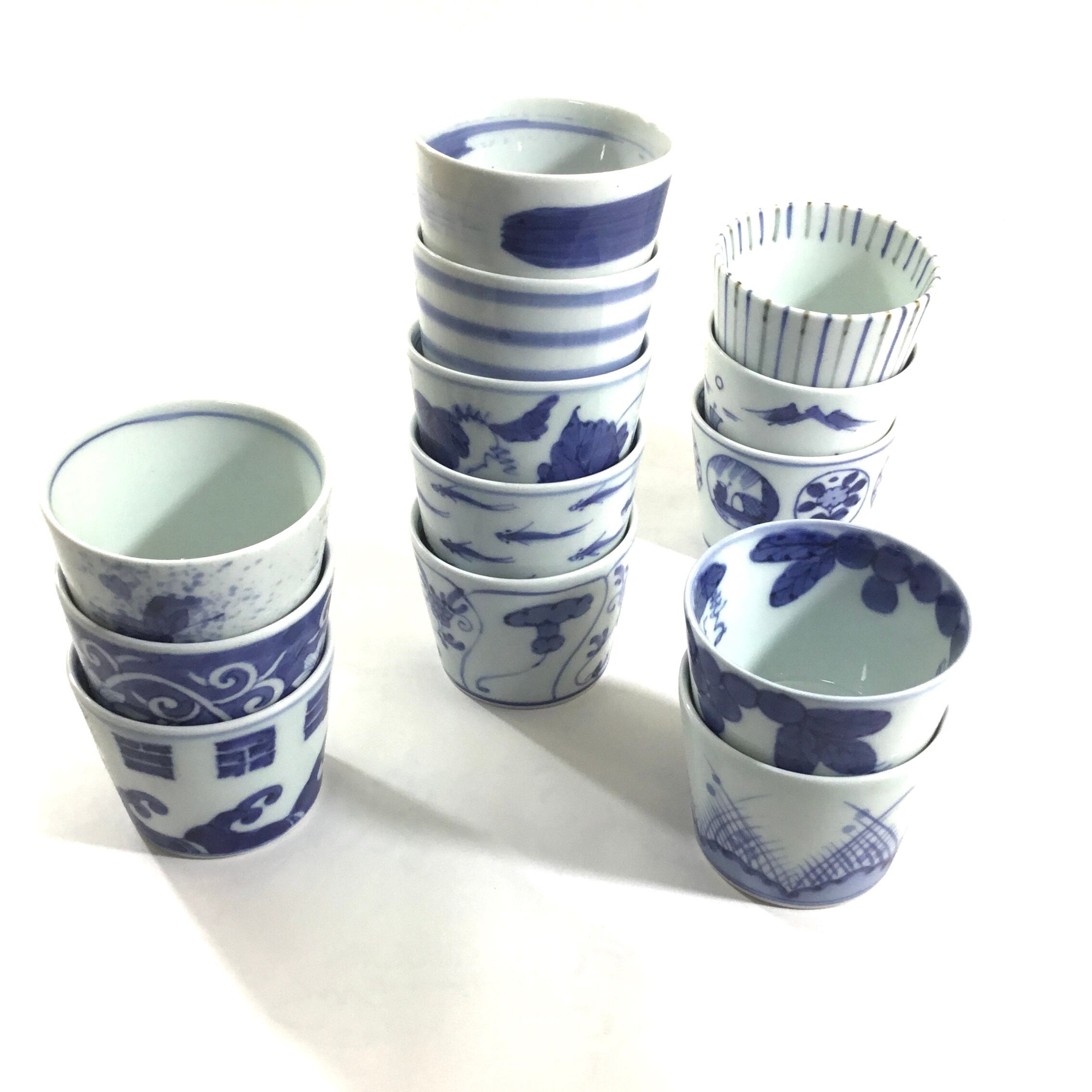 蕎麦猪口以外にも小鉢やコーヒーにも使え便利な器ですし、収納に場所を取らないので収集される方も多いです。昔占いに使っていた道具を描いております。涼しげで夏むきです。