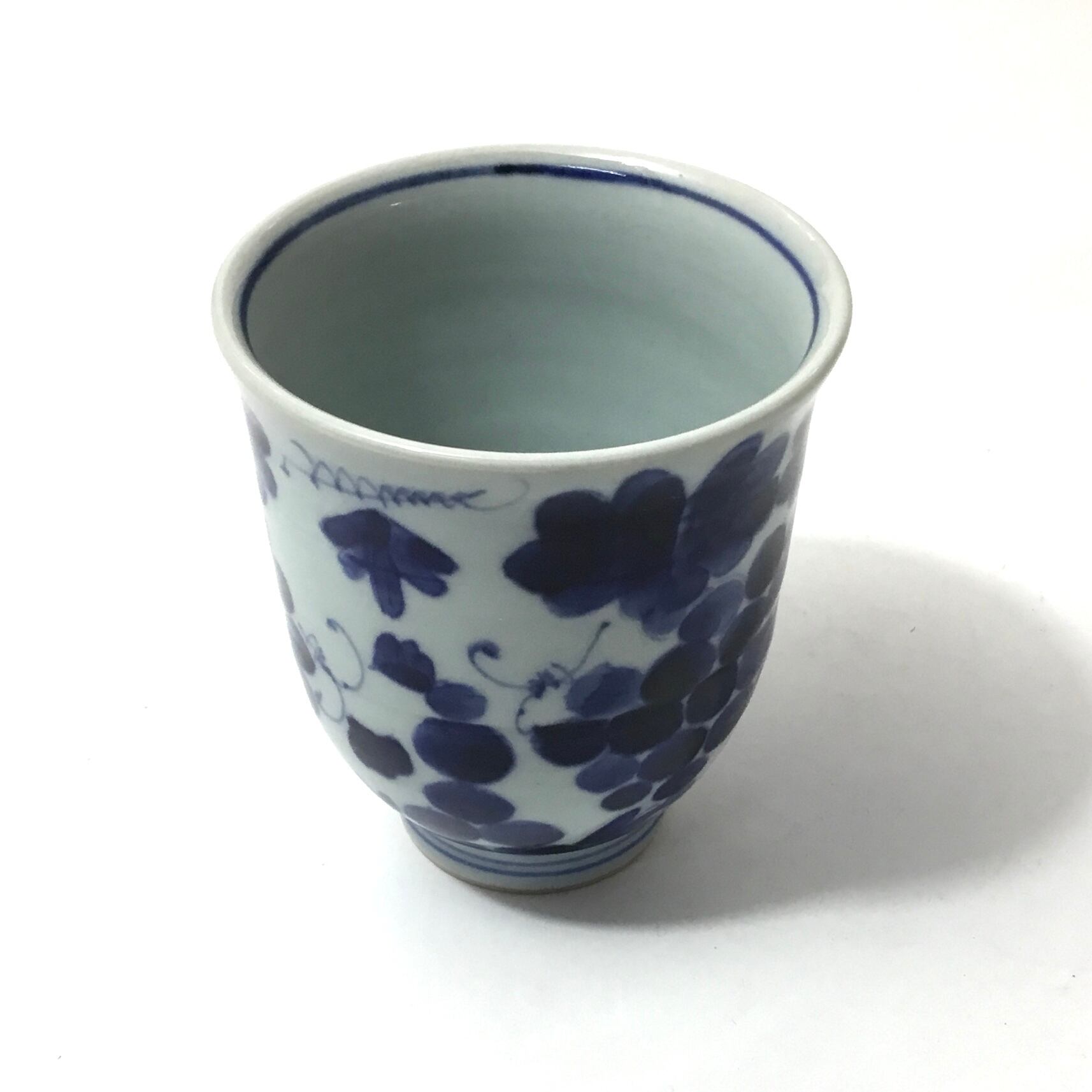 ロクロで1個ずつ手作りをし口当たりを良くするために縁を反らしてます。