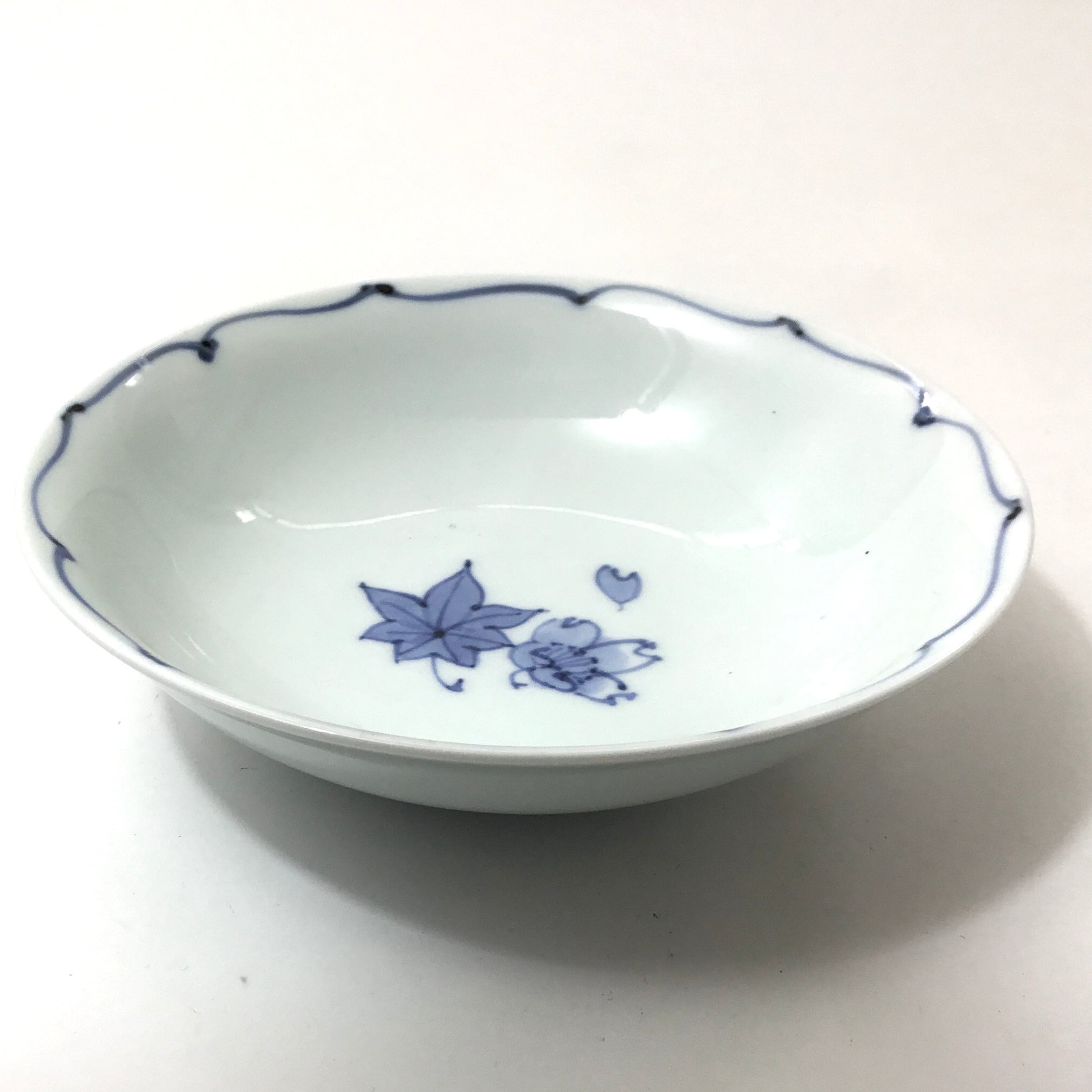 あっさりとした枠取りの中に桜と紅葉が散らしてあります。フルーツやお鍋の取り鉢にお使いください。