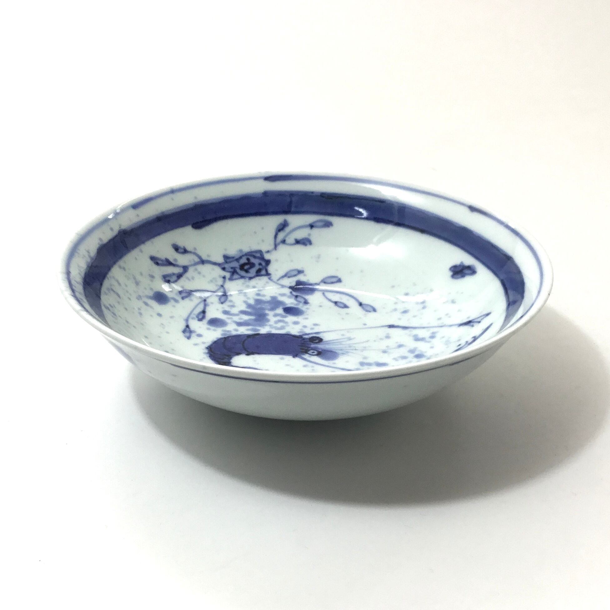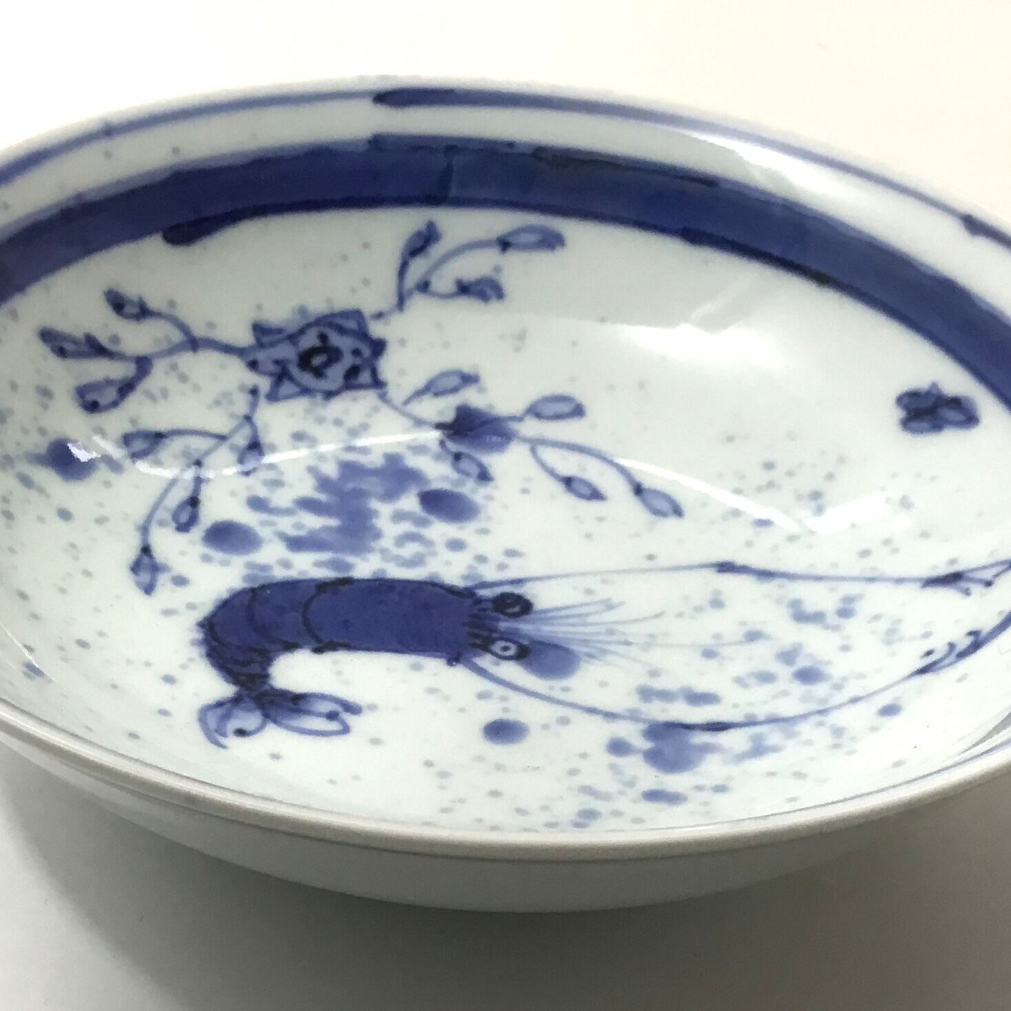 吹きずみと吉兆柄の海老を描いてます。海老は昔から(腰が曲がっても元気)というおめでたい柄です。