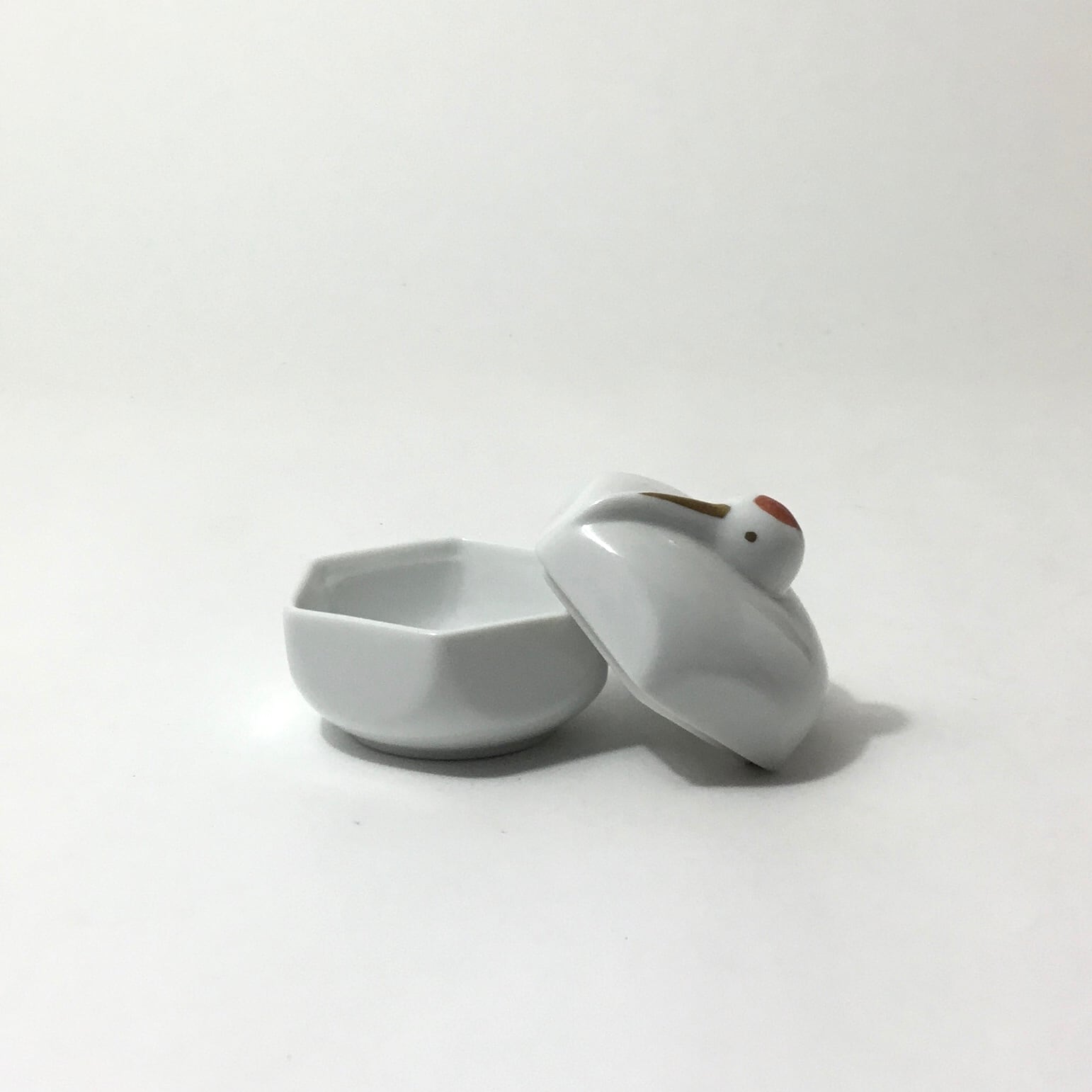 おめでたい可愛らしい鶴の蓋物です。珍味や黒豆を入れてお楽しみください。