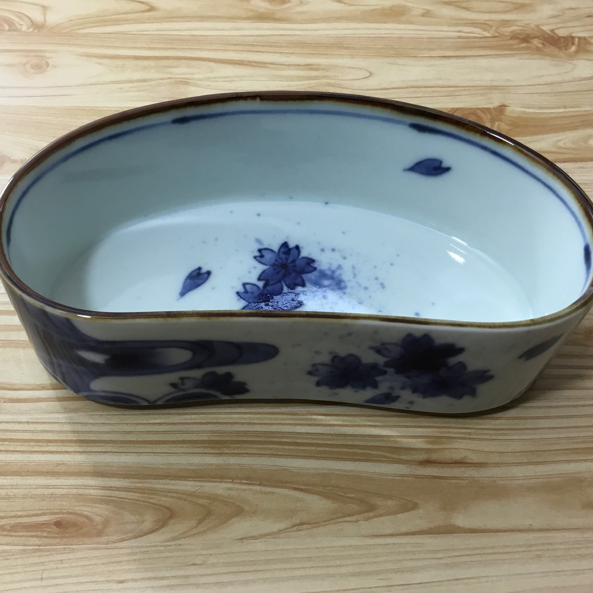 可愛い繭の形の蓋物で季節も問わずに使える桜と紅葉の柄と流水と青海波が描いてあります。